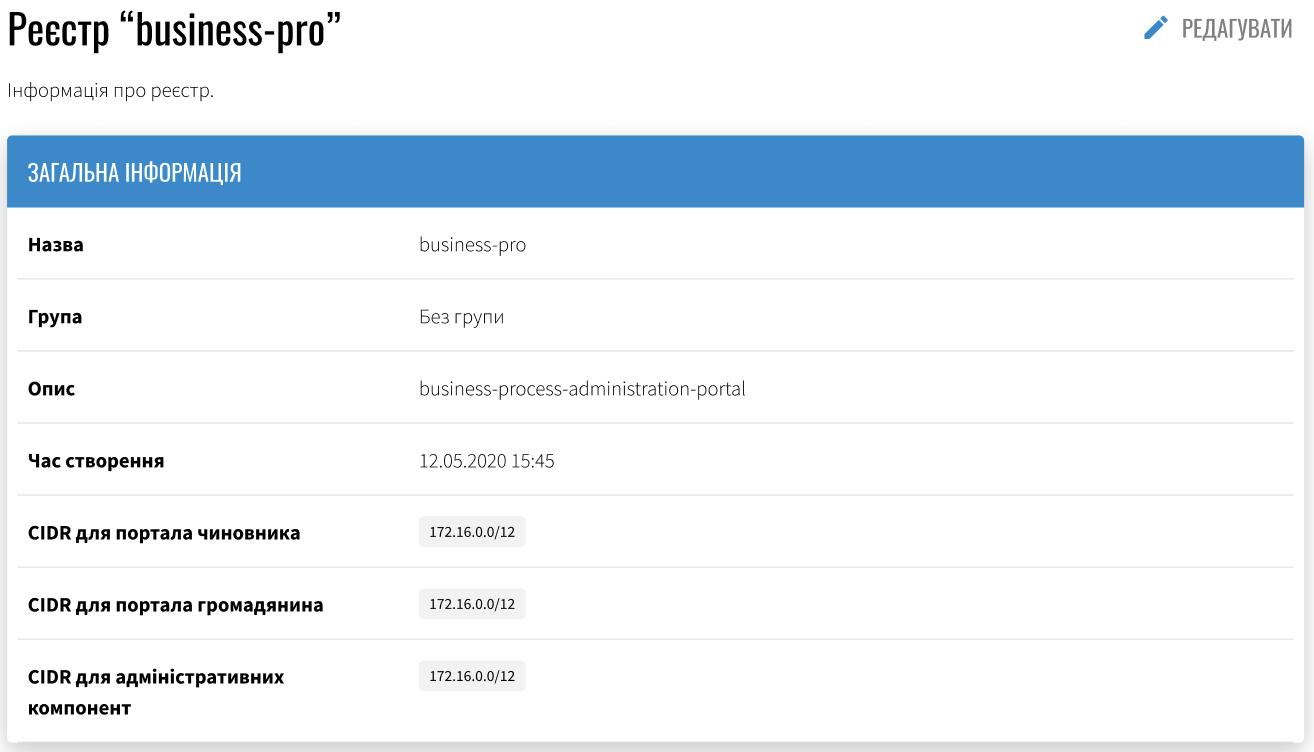 During the editing of an existing registry, the administrator can add or delete IP-addresses with allowed access to registry components. Platform Administration UI updates the added IP-addresses in the