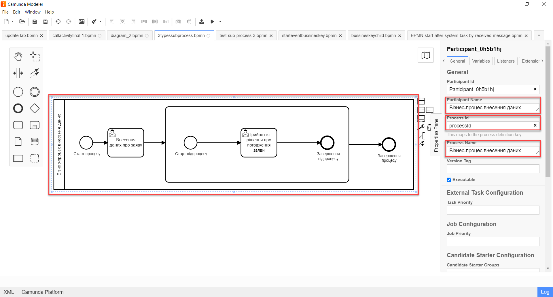 2.5.1. Modelling subprocess start event