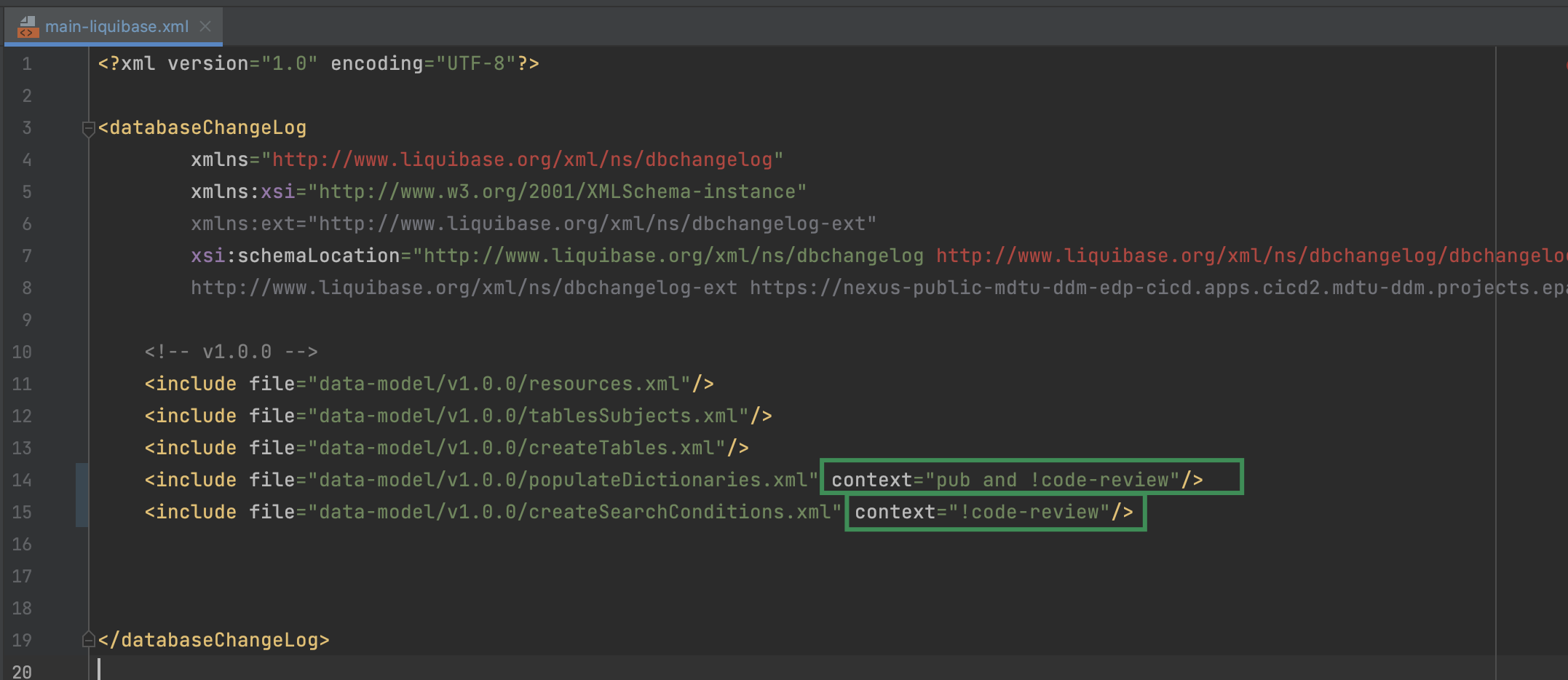 Since the standard Liquibase functionality does not cover all the needs when working with complex data structures, the Platform uses a custom extension library — liquibase-ddm-ext. This library adds support for custom tags (referred to as change types in Liquibase terminology), extending the capabilities of XML templates to describe specific business logic and structures.