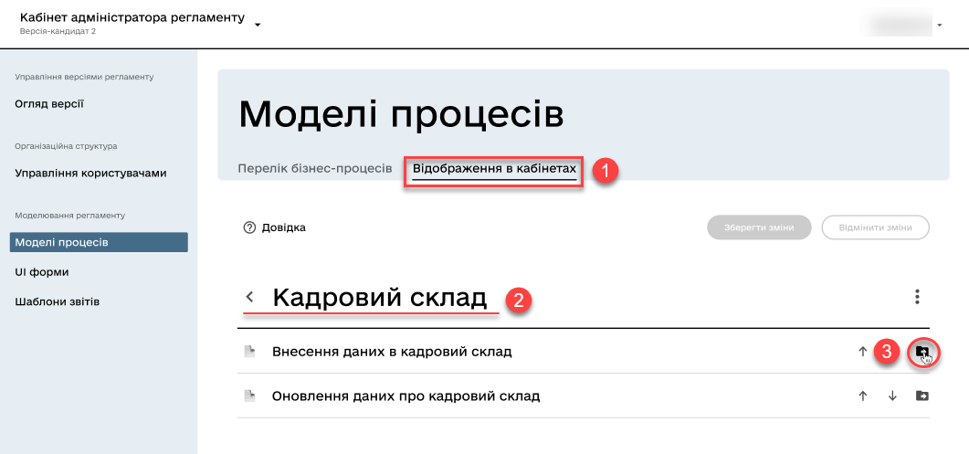 | All creation and editing operations can only be performed within a change candidate version of the regulations. The master version only allows viewing mode (see more at Managing registry regulations versions) |