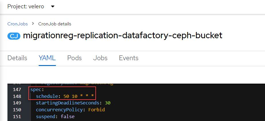 velero. Відкрийте розділ Workloads, потім перейдіть до CronJobs. Тут використовуйте пошукову панель для фільтрації бакетів за назвою реєстру, наприклад,migrationreg.