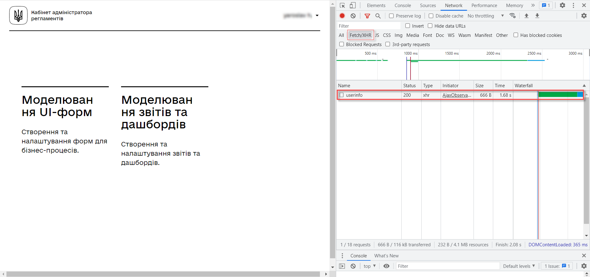 Виконайте авторизацію до Кабінету адміністратора регламентів. Після успішної авторизації буде отримано запит