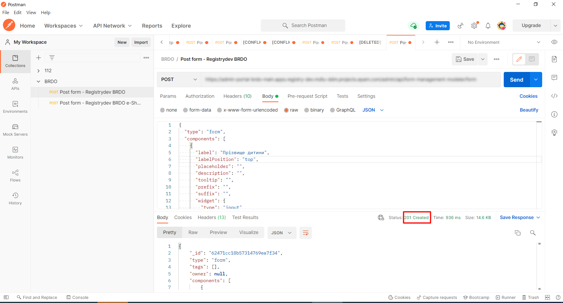 201 Created. Це означатиме, що форма успішно перенесена до Кабінету адміністратора регламентів.