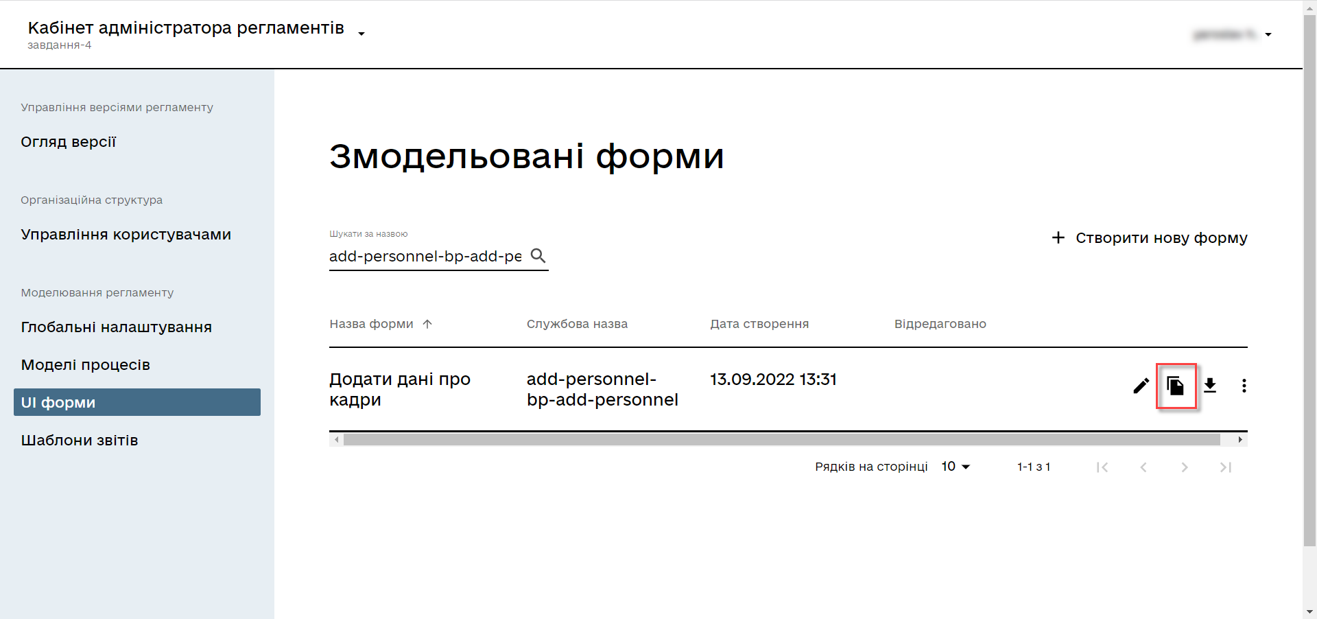 Для цього скопіюйте попередньо змодельовану форму, натиснувши іконку копіювання — це дозволить створити форму із готового шаблону.