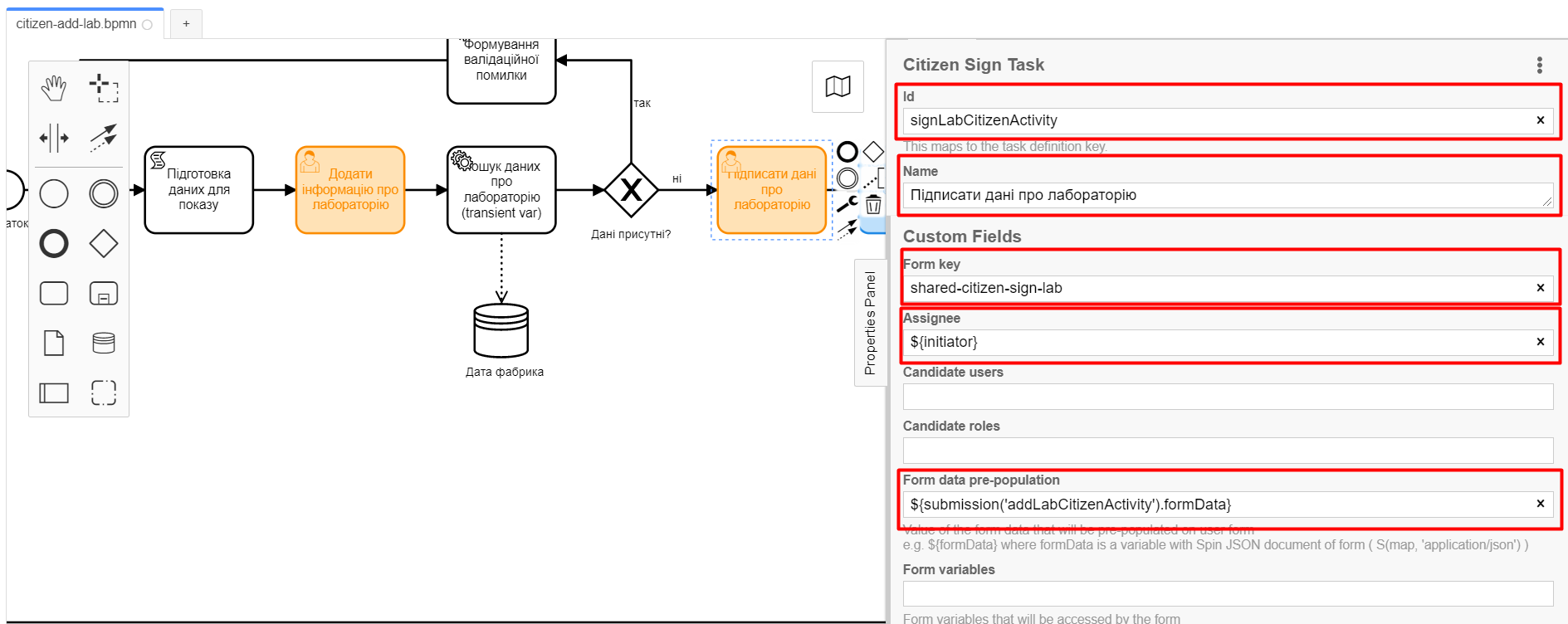 Службова назва формизначеннямshared-citizen-sign-lab(відповідає значенню поляForm keyтієї ж користувацької задачіsignLabCitizenActivity).