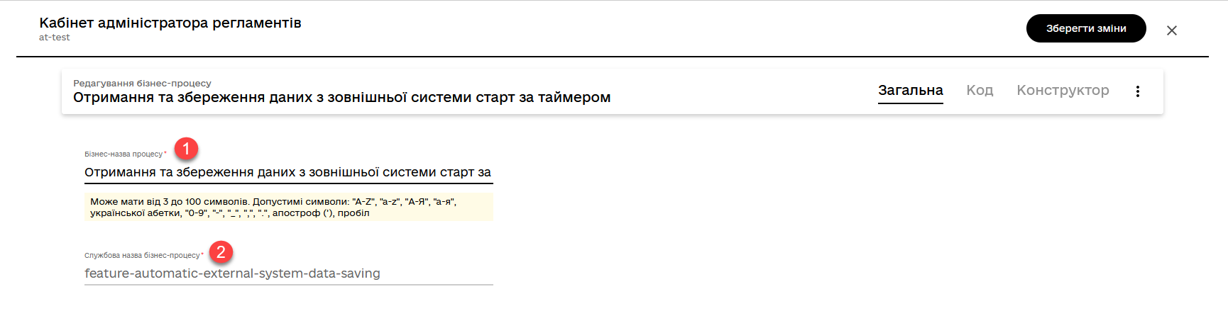 Створіть новий процес, вкажіть бізнес- та службову назву та перейдіть до вкладки Конструктор.