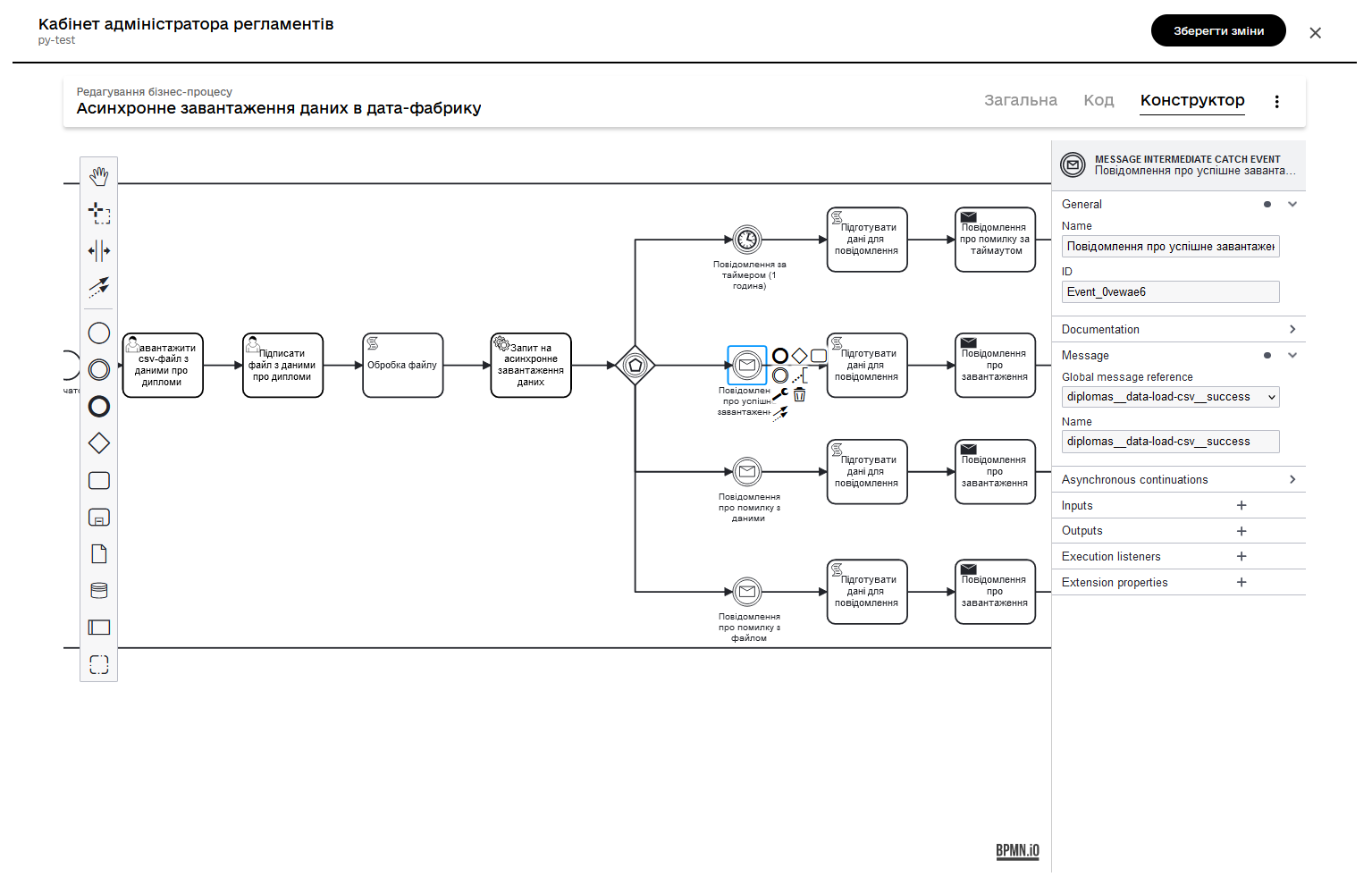 Розглянемо референтний приклад бізнес-процесу із завантаженням даних про дипломи.