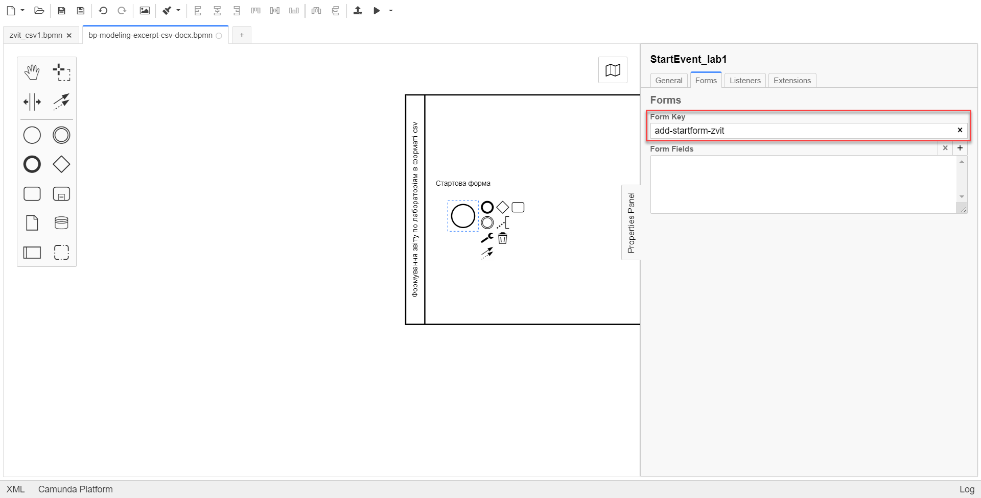 Назви форм ви можете знайти всередині відповідних користувацьких задач (User Task) бізнес-процесу у полі