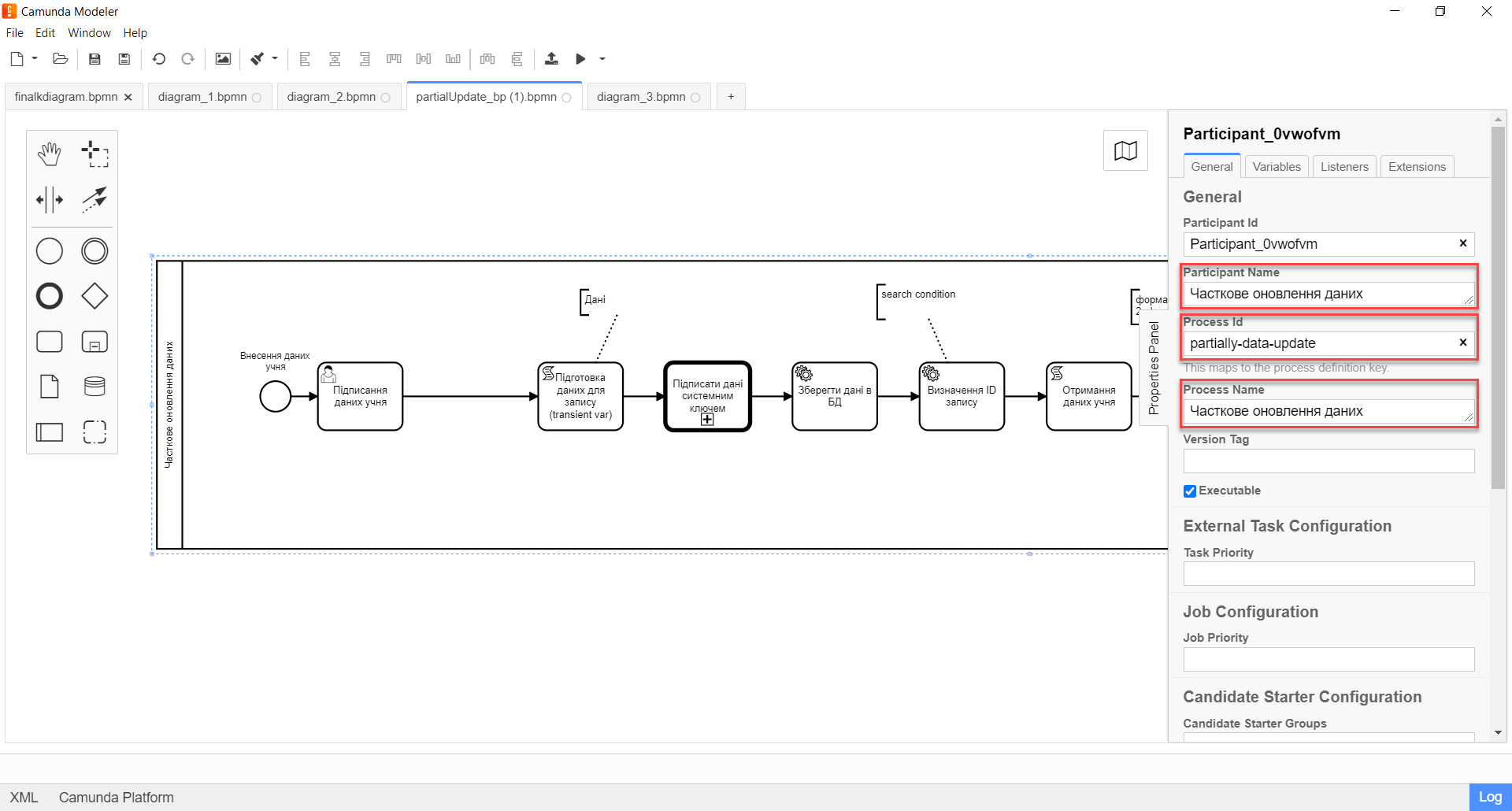 Process idвведіть ідентифікатор бізнес-процесу —partially-data-update. -