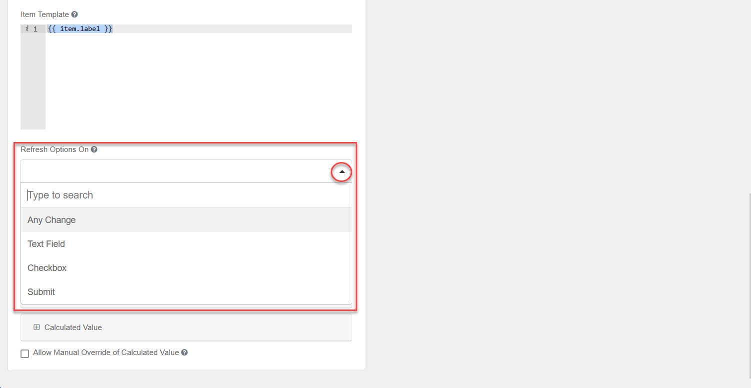 Textfield.В результаті зникають значення з поля Select. Це відбувається завдяки покращенню функціїRefresh Options on.