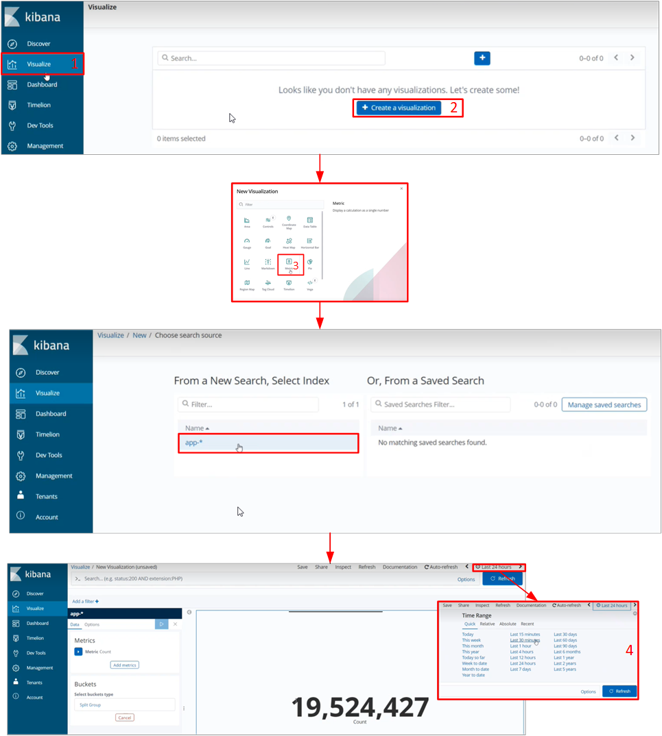 Kibana дозволяє візуалізувати інформацію за допомогою різних чартів. Для цього здійсніть наступні кроки: