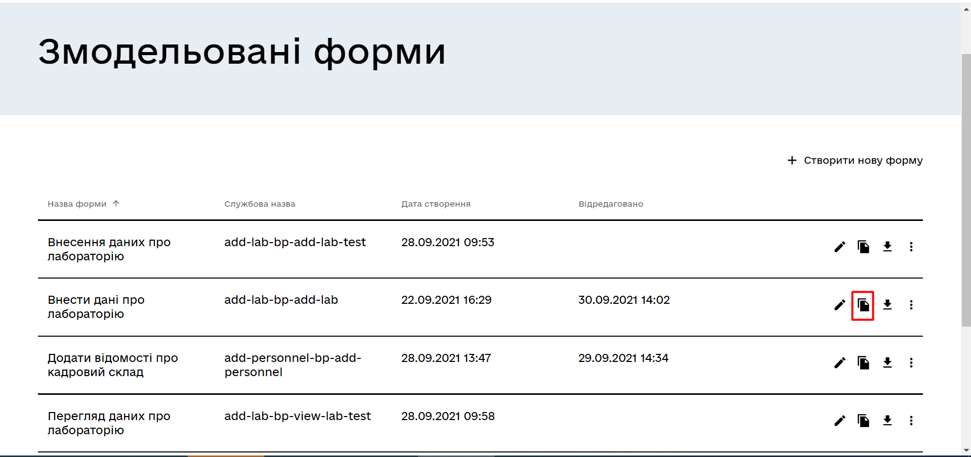 Для цього скопіюйте попередньо змодельовану форму, натиснувши іконку копіювання — це дозволить створити форму із готового шаблону.