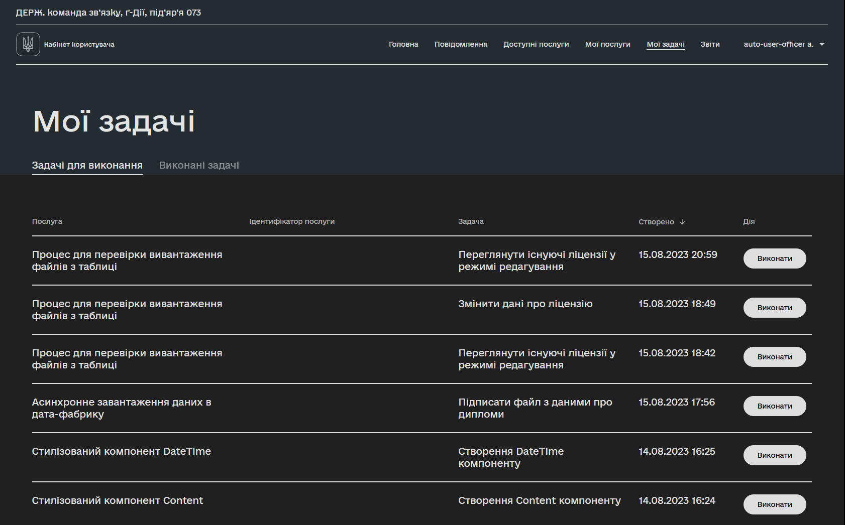Задачі для виконання відображають бізнес-процеси, до виконання яких залучений користувач. В переліку зазначені невиконані задачі користувача.