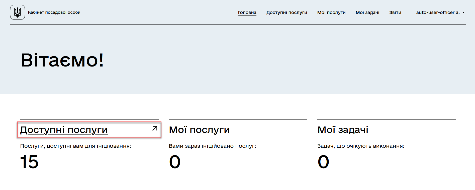 Увійдіть до Кабінету посадової особи, натиснувши кнопку
